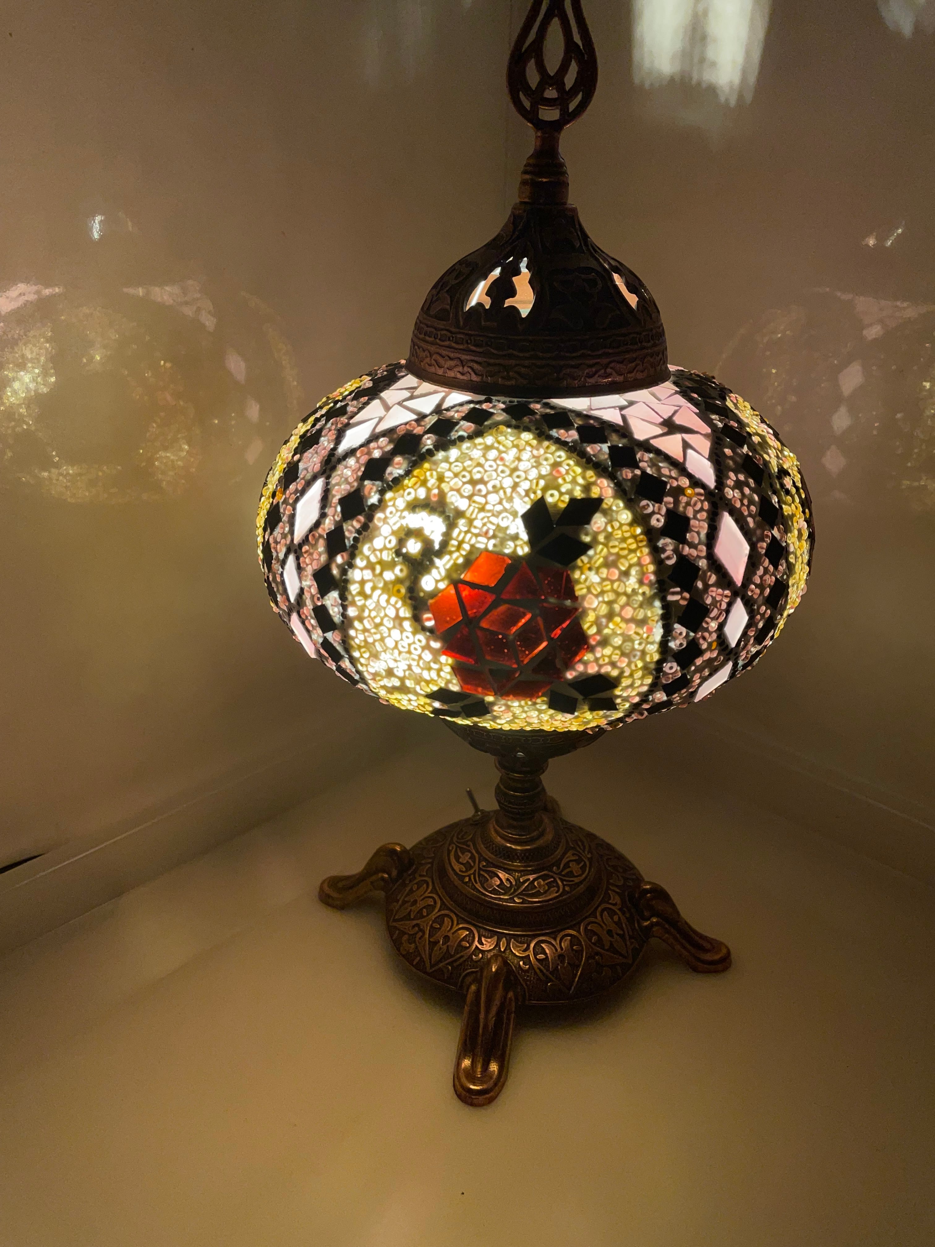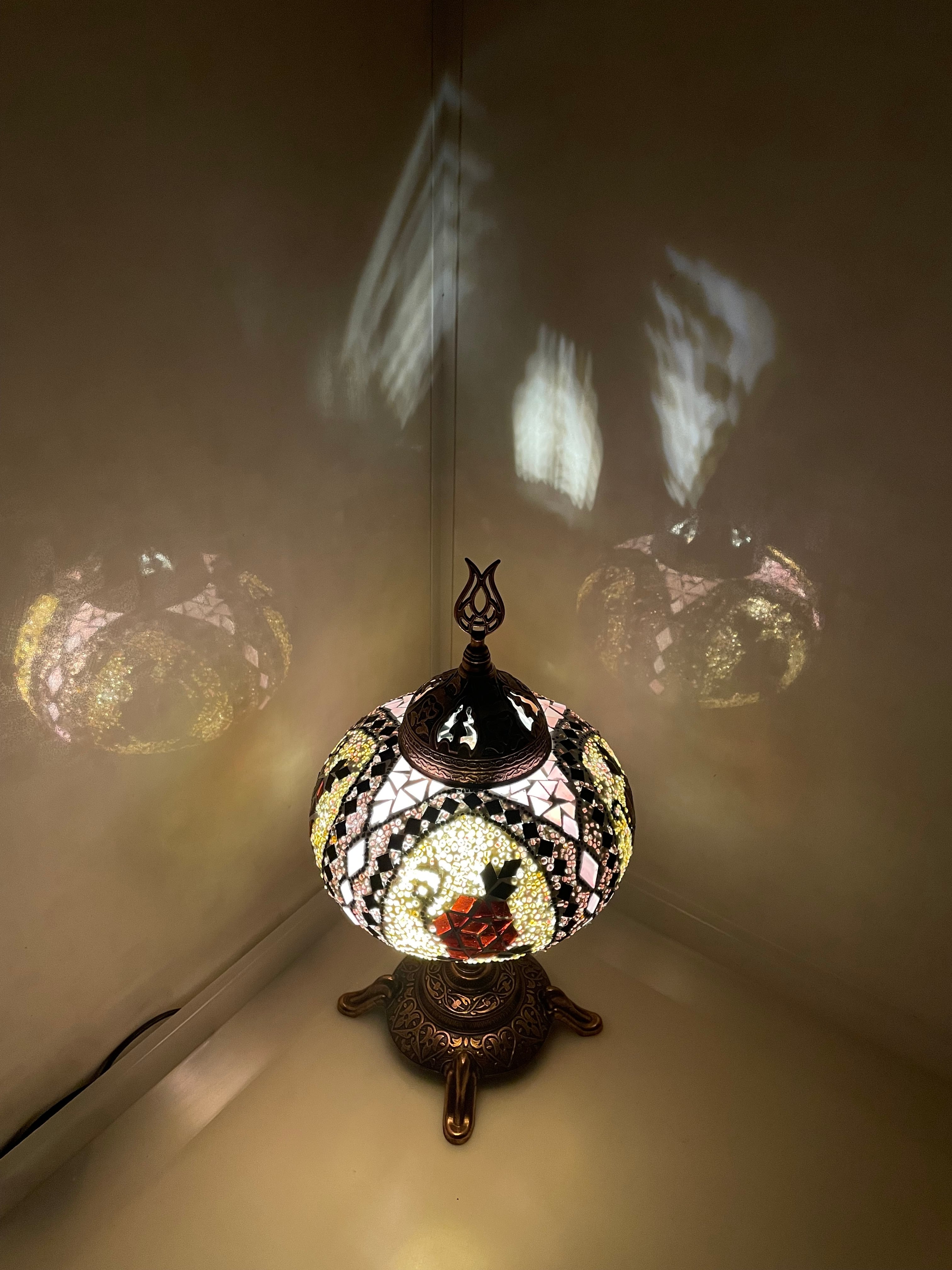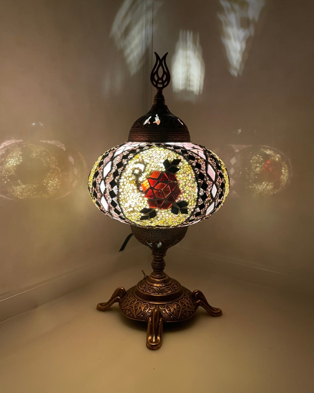 バラのモチーフが中央に輝く、女性らしい佇まいのトルコランプです。