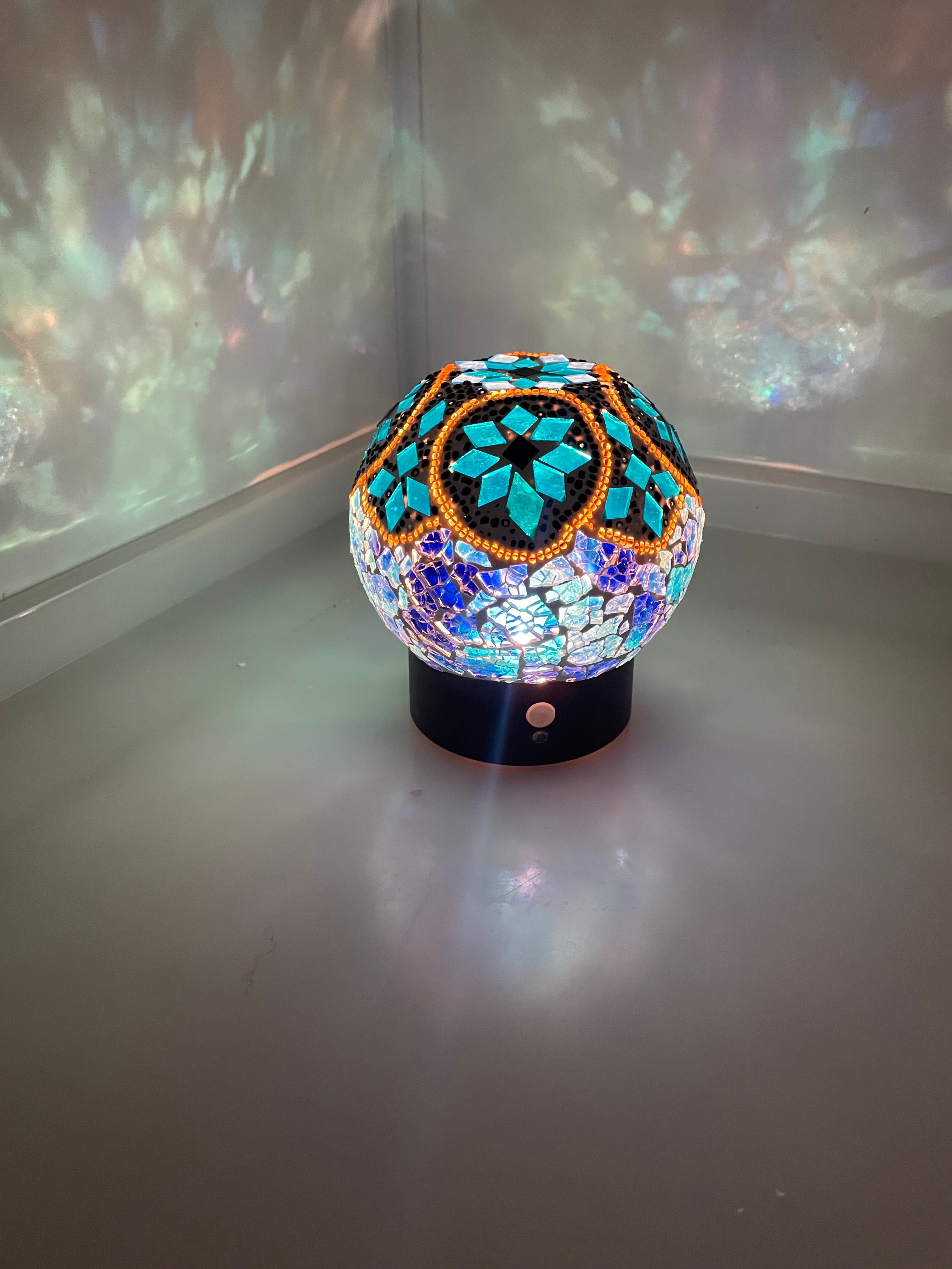ブルーのクラッシュガラスが織りなす、繊細な輝きが目を引きます。このアイテムは人感センサーを搭載しており、動きを感知して自動で点灯します。光の当たり方によって変化するその美しさは、まるで宝石のように貴女のお部屋を彩り、心地よい空間を演出します。